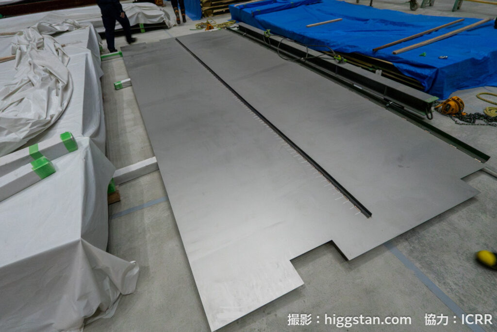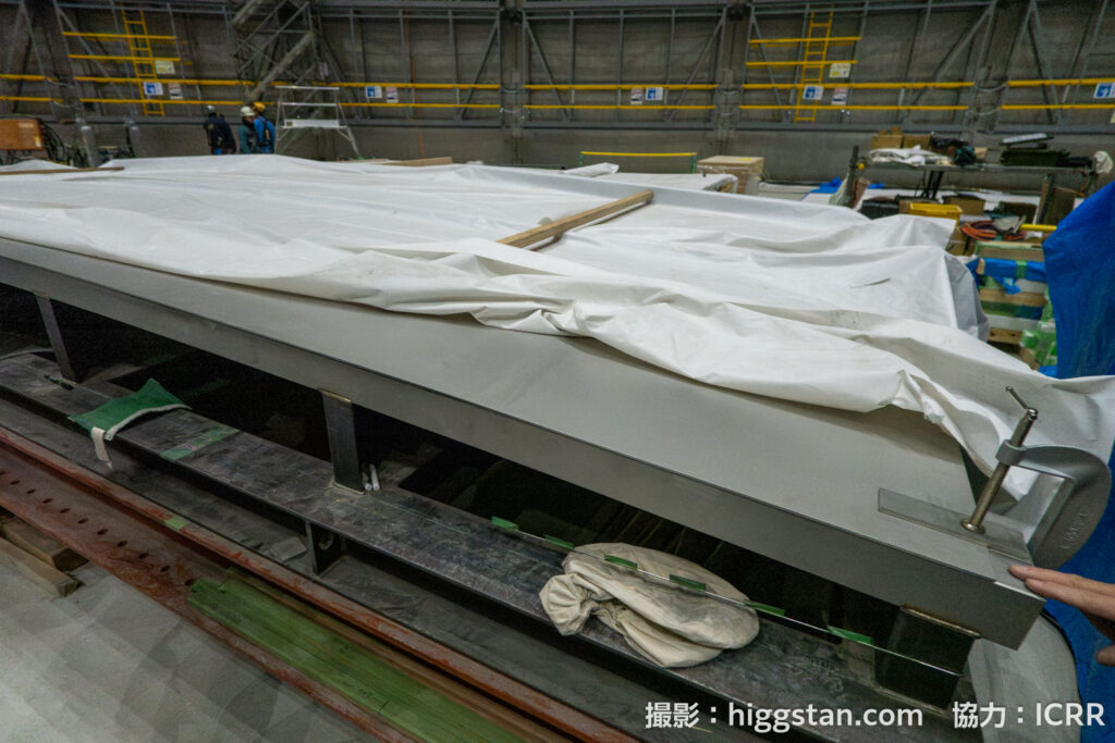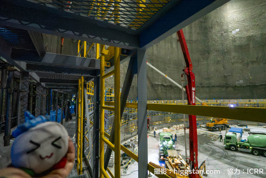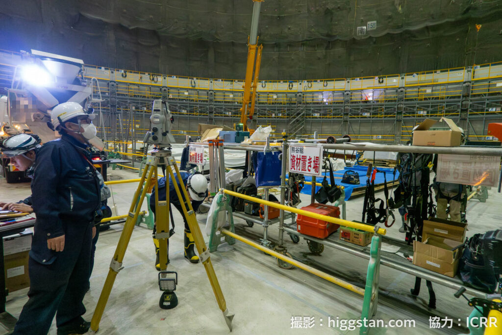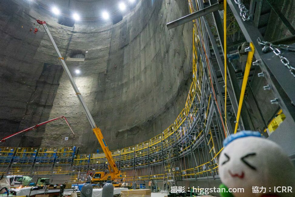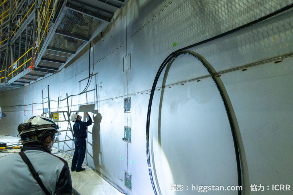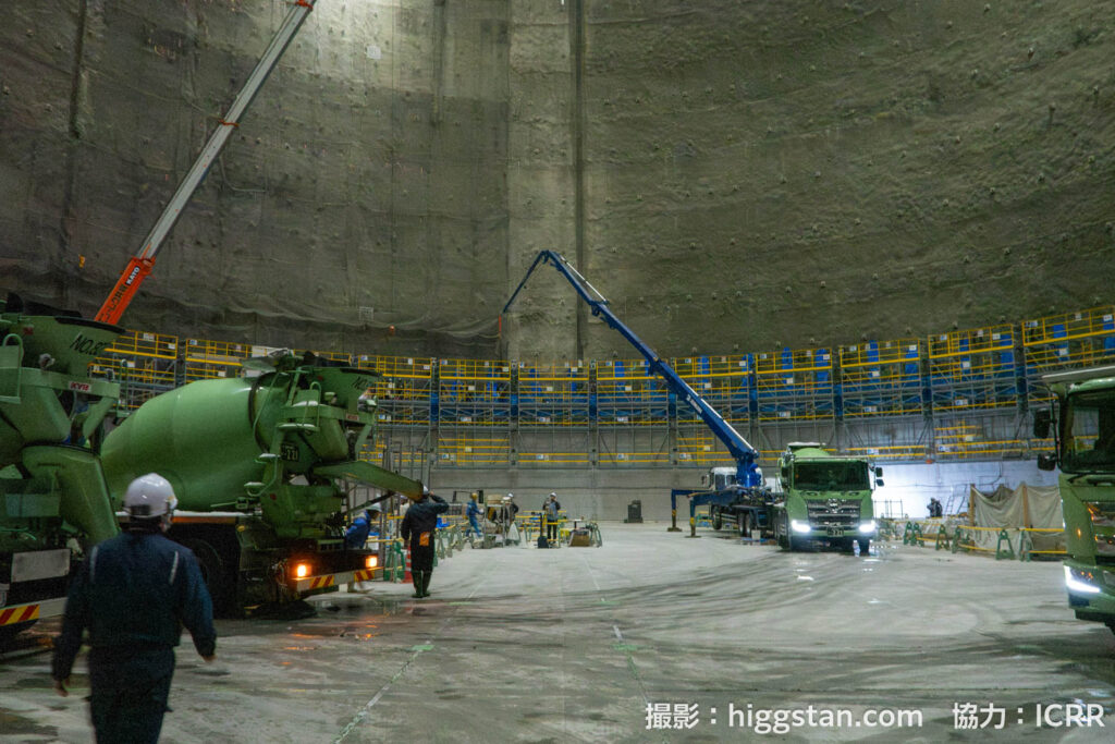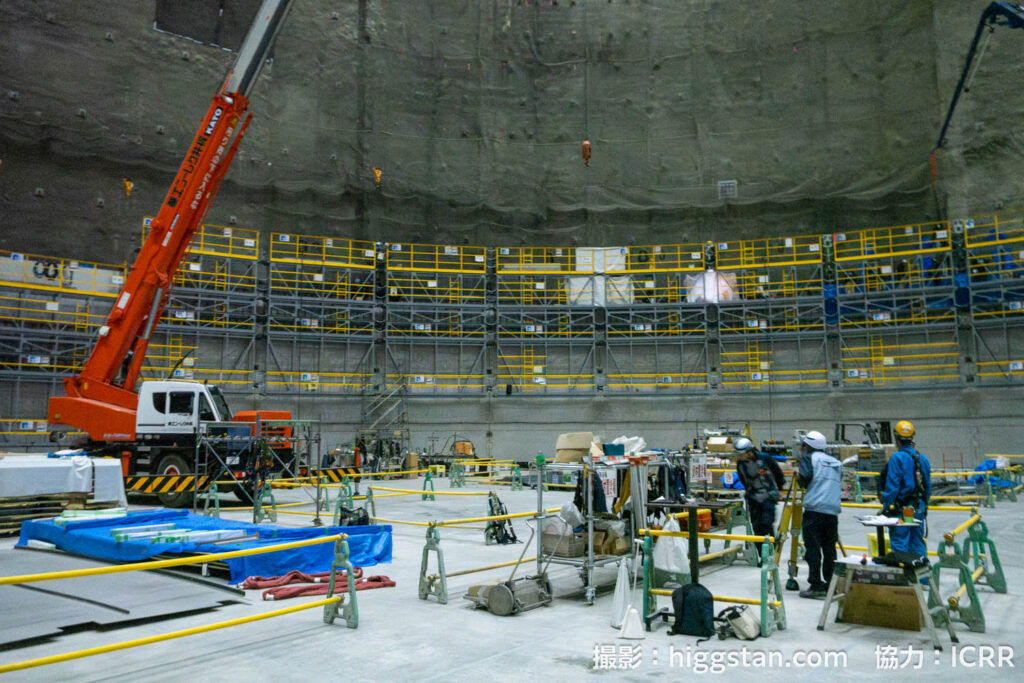 このあとはハイパーカミオカンデを素粒子実験の装置とするために、水槽を造って、光電子増倍管を設置して、超純水を入れて実験をする…!という流れになりますが、今回は2025年8月から始まった水を入れるための水槽を設置する作業をレポートします!