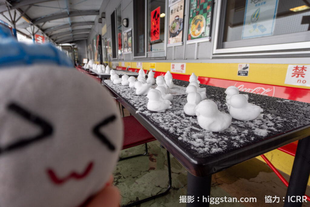 そんな怖い雪ですが、神岡の道の駅「スカイドーム神岡」では、たくさんのアヒルさんになっていました。かわいいね。