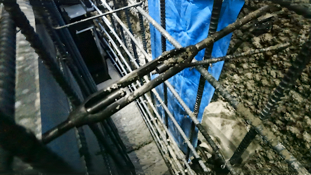 2. 骨組み作り:空洞の壁に沿って、鉄骨と鉄筋を組みあげる