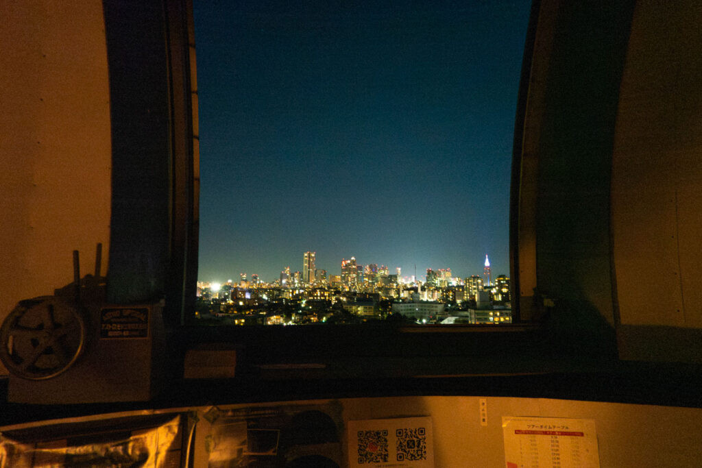 こんな場所にあるのですから、それはもう、東京のビル群がとても良く見えます。これは日が暮れたあとの写真ですが、街明かりでキラキラ、とってもきれい!!…天体観測には、あまり向かなそうな場所ですね。