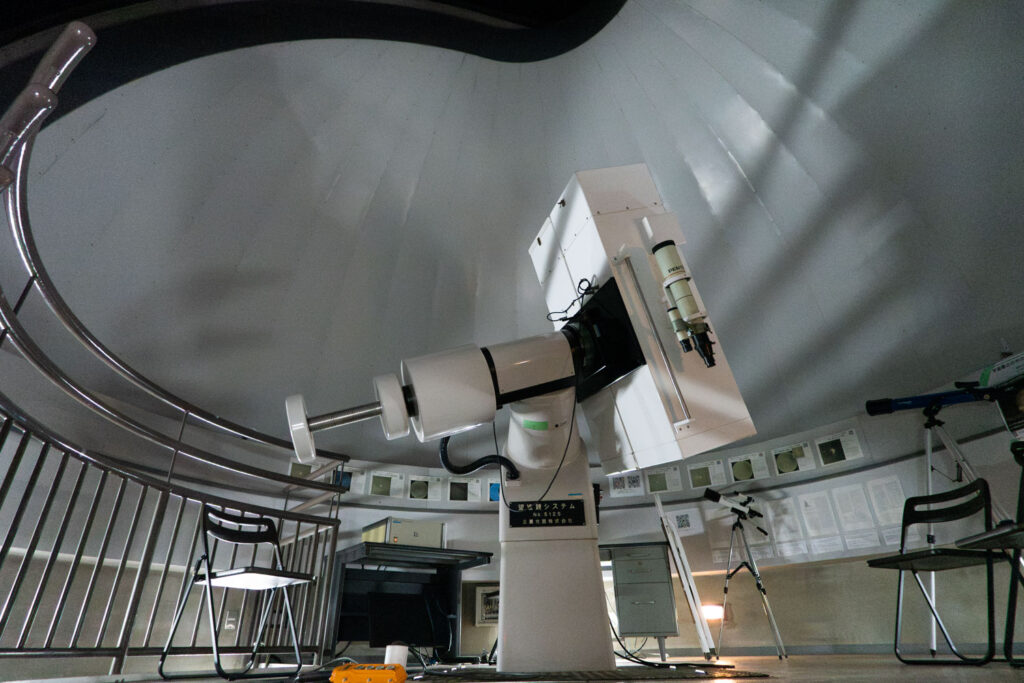 まず目を引くのが、でっかい2つの望遠鏡の鏡筒。もともとは、ちゃんとした観測のために用意された鏡筒だと思われるのですが、現在利用できるのは残念ながら片方だけです。