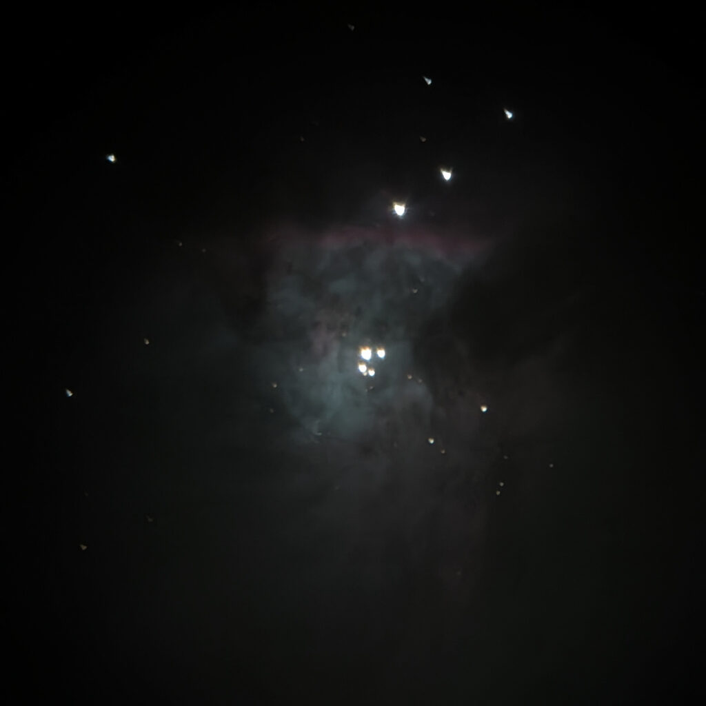 そして最後に撮影したのが、地球からおよそ1300光年離れたオリオン大星雲です。点々と輝く星だけでなく、このようにもやもやした星雲まで、スマホでも撮影できるなんて、本当にびっくりです。