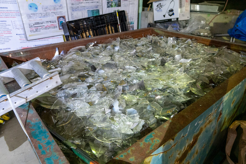 こちらが、破壊された光電子増倍管のガラス部分。粉々です。