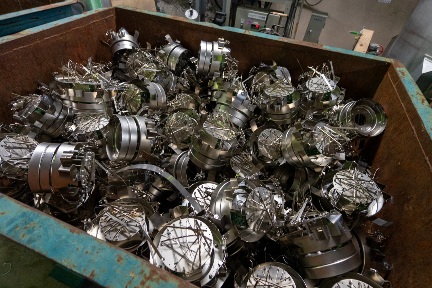 取り外された光電子増倍管は、基本的にはすべて廃棄されてしまうのですが、そのうちの一部は製造元である浜松ホトニクスに回収されます。オイルの中という特殊な環境で、20年ものあいだ作動し続けていた貴重なサンプルとして、いろいろと調べられるのだそうです。