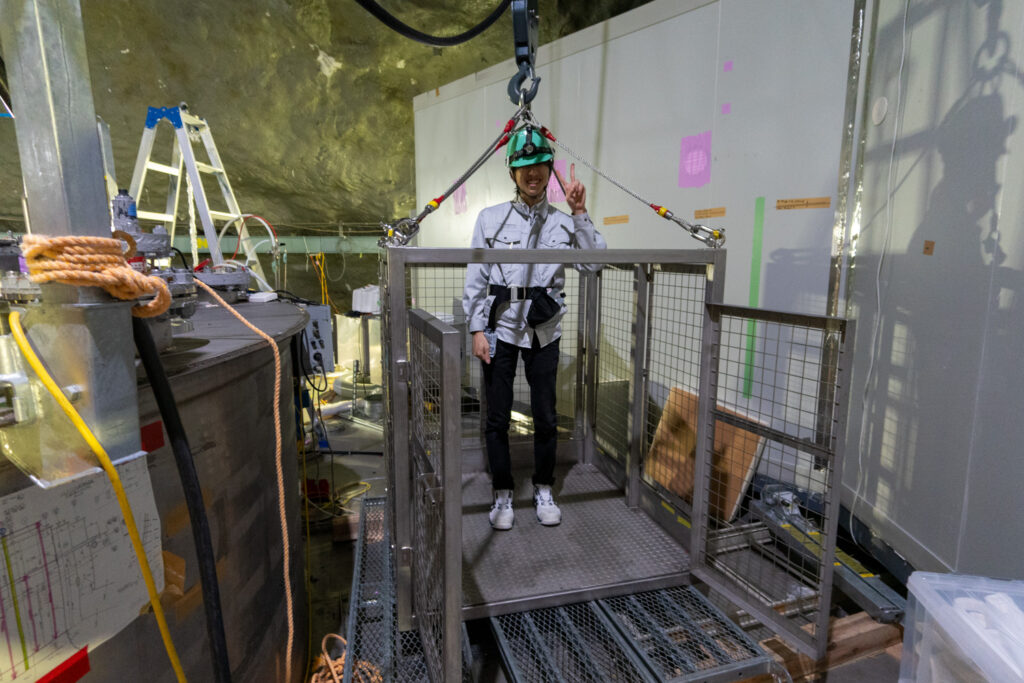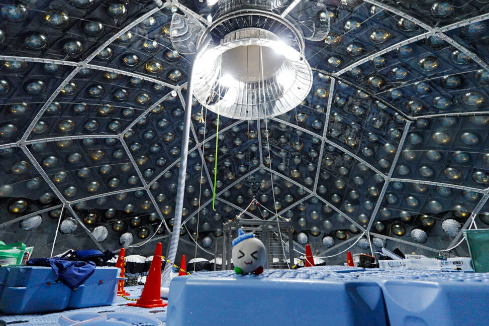 岐阜県飛騨市神岡町にある神岡鉱山の地下1000メートルで、液体シンチレータと呼ばれる少し特殊なオイルを使って反ニュートリノを検出する実験、KamLAND(カムランド:Kamioka Liquid Scintillator Anti-Neutrino Detector)。東北大学が中心となって行っている実験ですが、現在は次世代のKamLAND2の始動に向けて、検出器のアップグレードが進められています。
